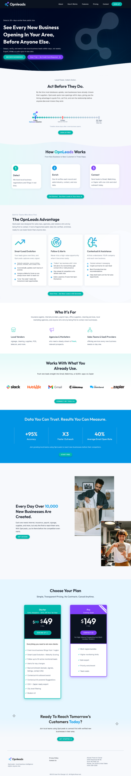 Summary: OpnLeads is a B2B SaaS that automatically discovers newly formed businesses from daily county filings, cleans and enriches the records through multi-source intelligence, and surfaces high-quality, outreach-ready leads.